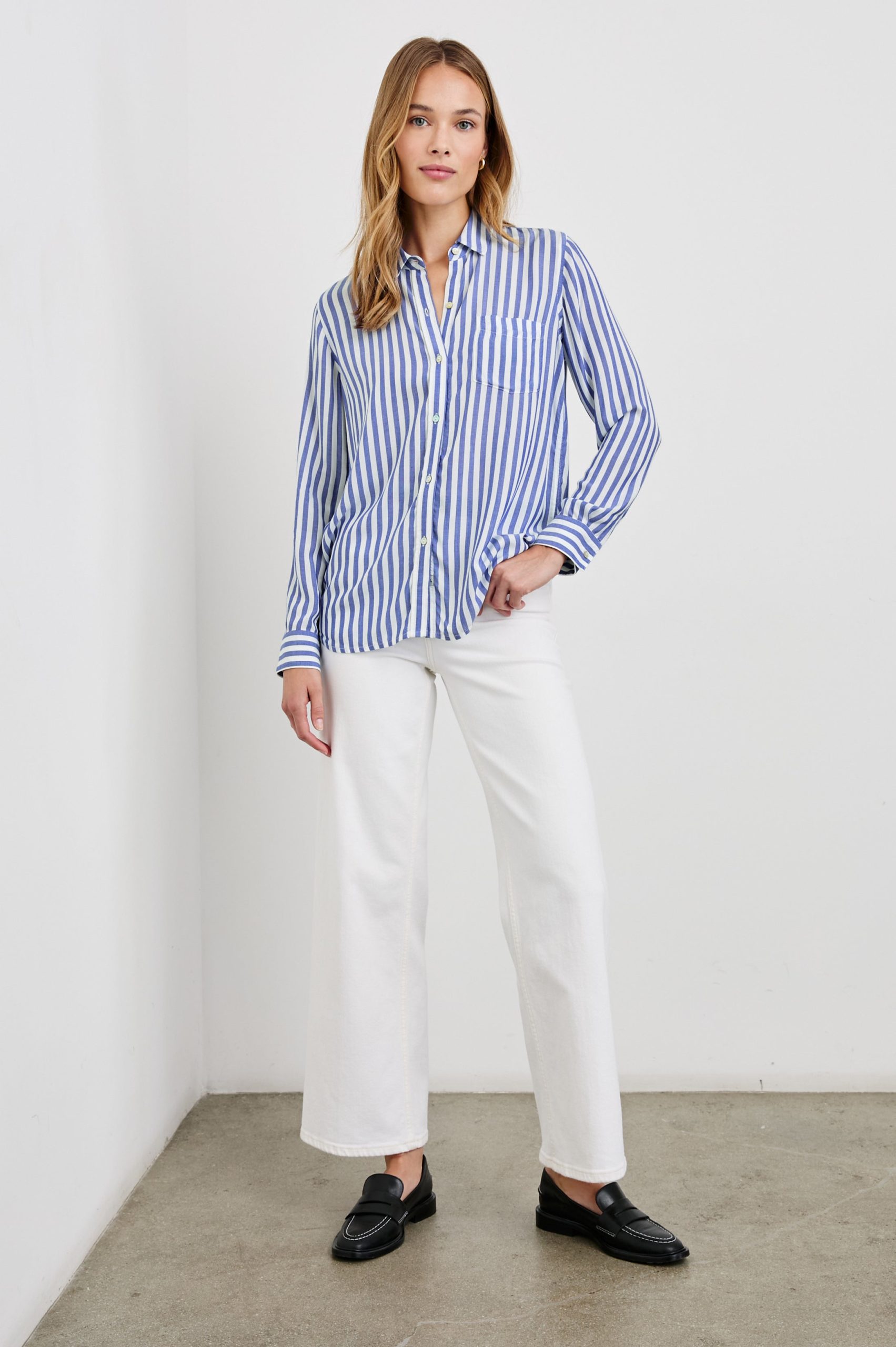 Call on this essential button-down for any outfit or occasion. Crafted from a soft rayon fabric with traditional shirting details and a classic silhouette, the Wren instantly refines any ensemble.