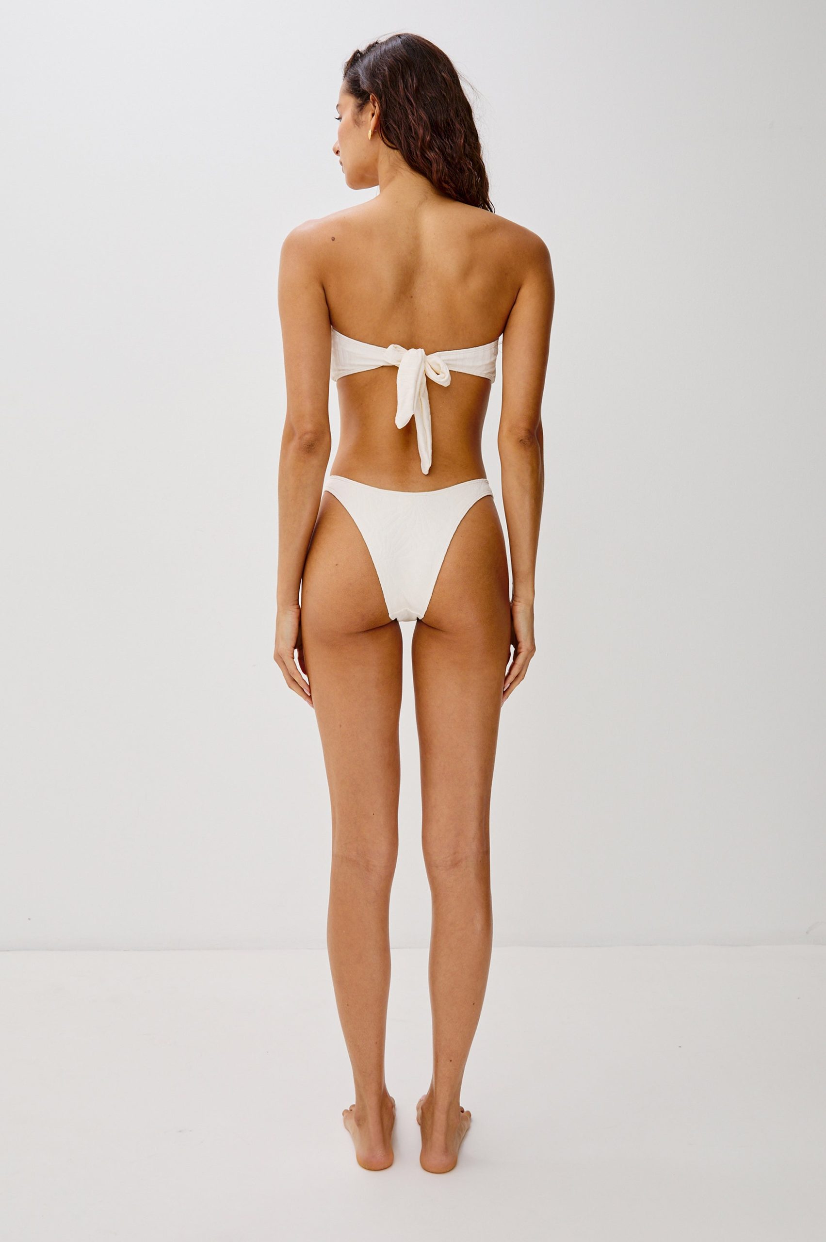 Featured in a textured fossils fabric, the Rails x LSPACE Aziza bottoms offer bitsy coverage for a cheeky, flattering fit. The low-rise cut and high-leg design create an elongated silhouette, while elegant spiral hardware detailing adds interest at the hip.